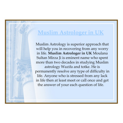 Moulana Sultan Mirza is recognized as famous Muslim Astrologer in UK who has perfect talent to quickly resolve all kind of troubles. Muslim astrology is most powerful tool that will give you instant result. Any query call or Whatsapp now at +91-9914172251