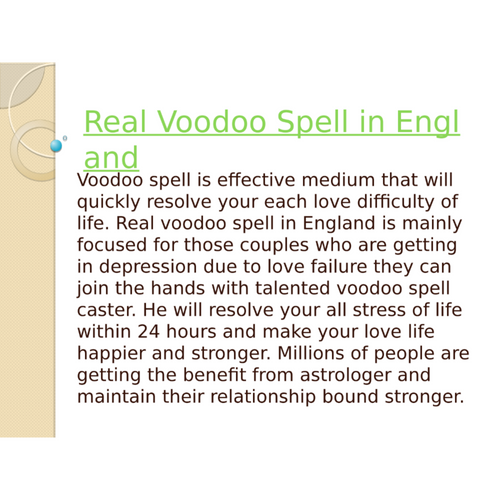 Voodoo spell is mainly effective in love issues and attaining lost love. Real voodoo spell in England provide best services of voodoo spell and resolve your all kind of love issues. Any sort of query or information related love solution then call or whtasapp now at +91-9914172251