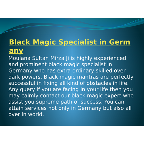 Black magic is unique medium that will help you in resolving your all worries in life. Meet famous black magic specialist in Germany who is well eminent in fixing each stress within 24 hours. Any query call or Whatsapp now at +91-9914172251