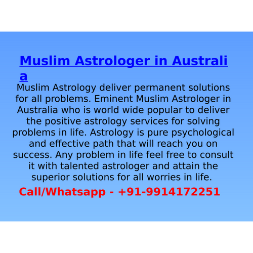 Muslim Astrology permanent solution for all unconditional problem solution. Call talented Muslim Astrologer in Australia who direct you best path of success and easily resolve your all worries in life. Call or Whatsapp now at +91-9914172251