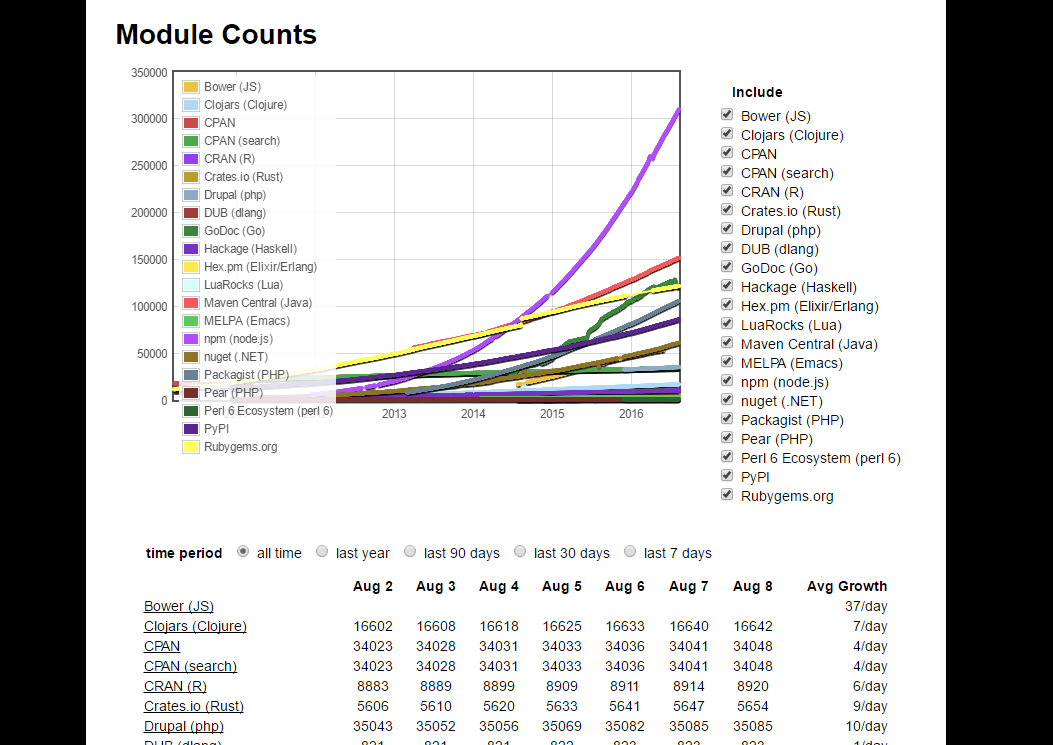 Quel est le language dont le plus de module est publié?