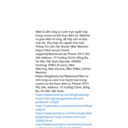 Website: https://blogfreely.net/9betemail/9bet-la-nen-tang-ca-cuoc-truc-tuyen-tap-trung-casino-va-the-thao-dien-tu. 9Bet là nền tảng ca cược trực tuyến tập trung casino và thể thao điện tử. Website có giao diện rõ ràng, dễ tiếp cận và bảo mật tốt. Ph