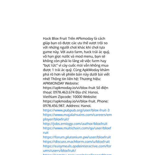 Website: https://apkmoday.io/vi/blox-fruit. Hack Blox Fruit Trên APkmoday là cách giúp bạn có được các ưu thế vượt trội so với những người chơi khác khi chơi tựa game này. Với auto farm, hack trái ác quỷ, vô hạn giọt nước và mod menu, bạn sẽ không cò