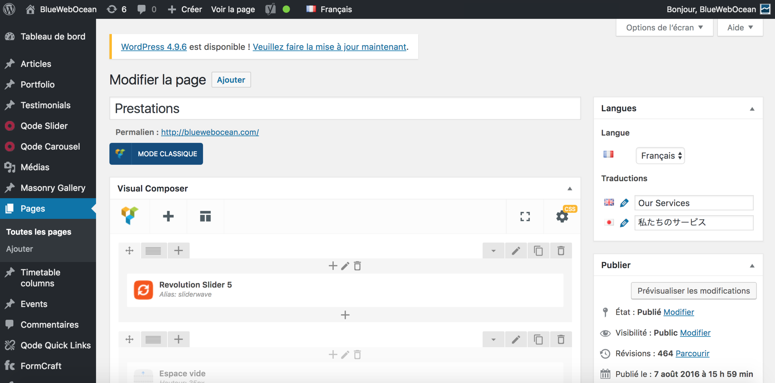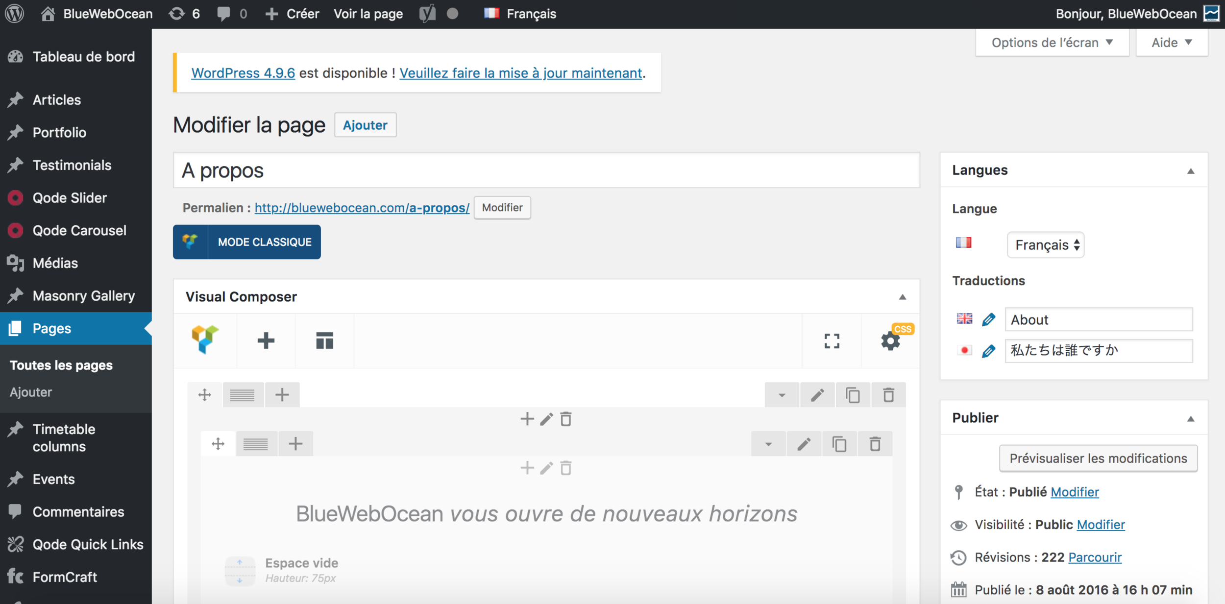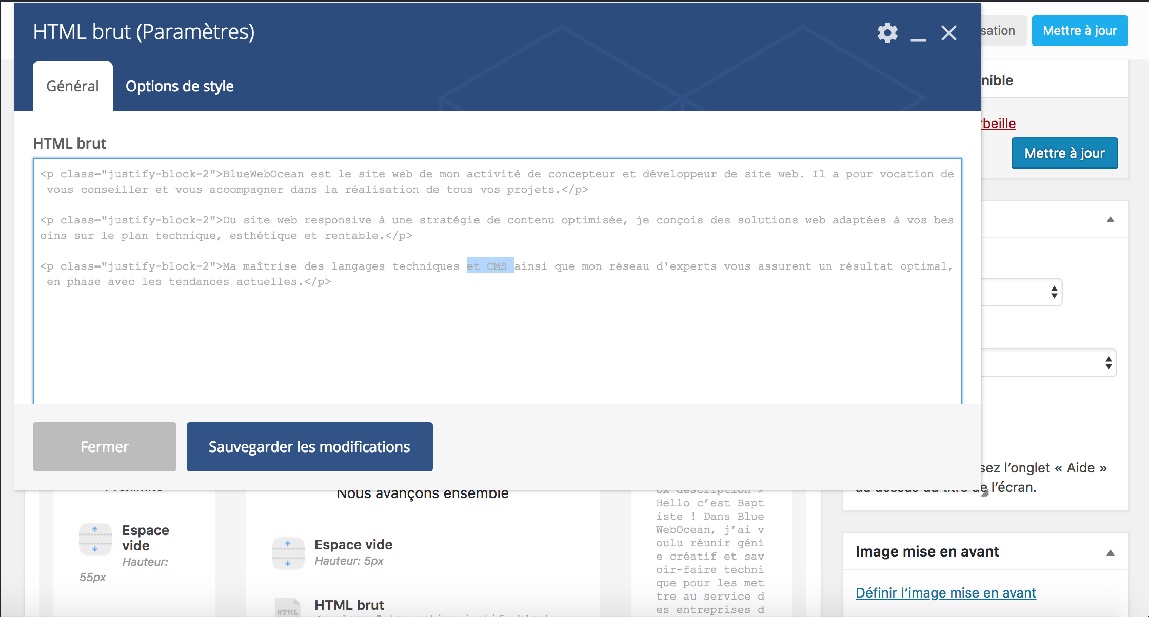 Le résultat des modifications sera effectif si vous retournez sur le Front de la page en pressant voir la page.