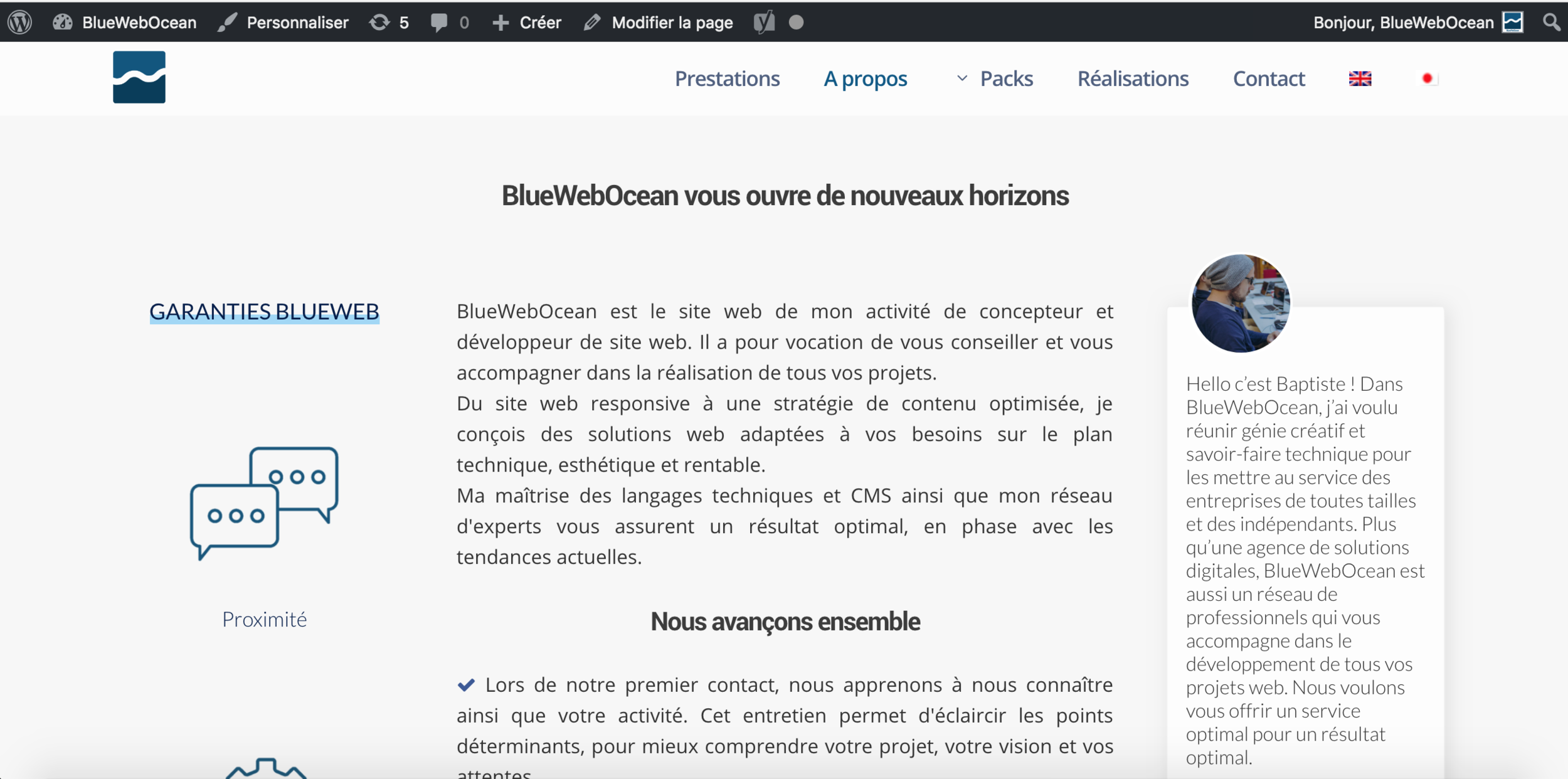 Pour retourner sur la partie visuelle, je clique à nouveau sur le nom du site et sur le lien "Aller sur le site"