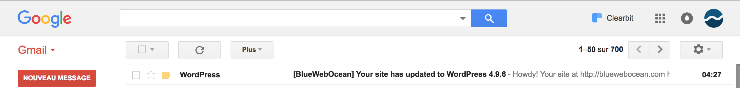 vous recevrez un email vous attestant de la mise à jour automatique à la nouvelle version.