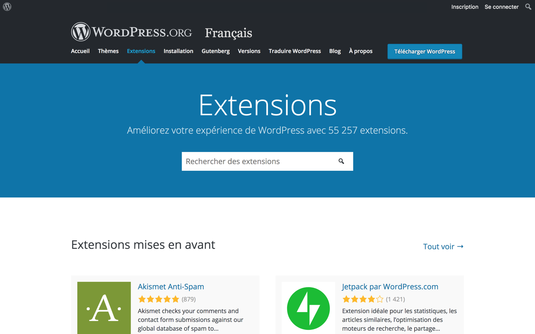 Extensions = permet d'installer, d'activer ou de désactiver des extensions (= plugins)