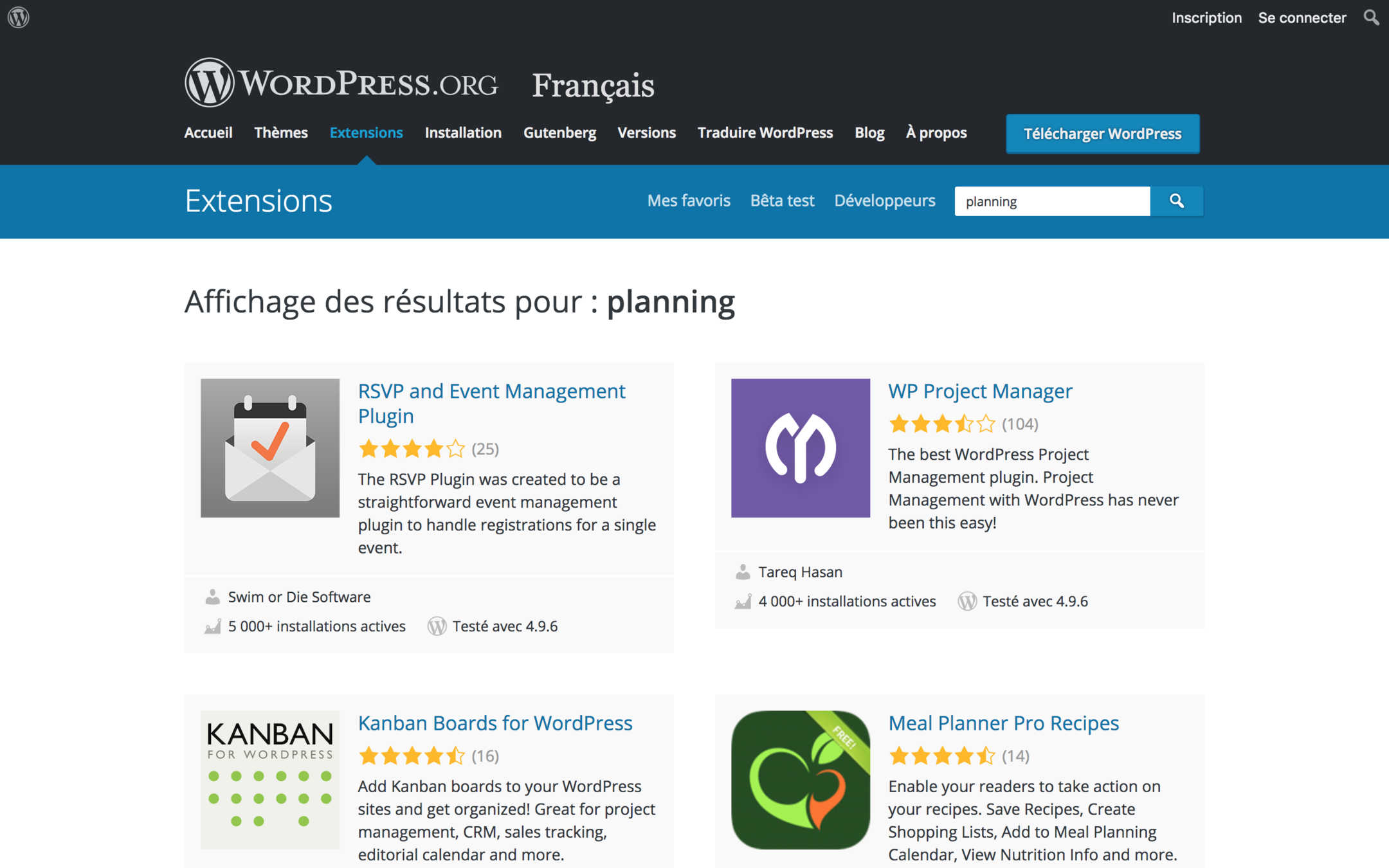 Lien de la page cliquée : https://wordpress.org/plugins/tags/planning/