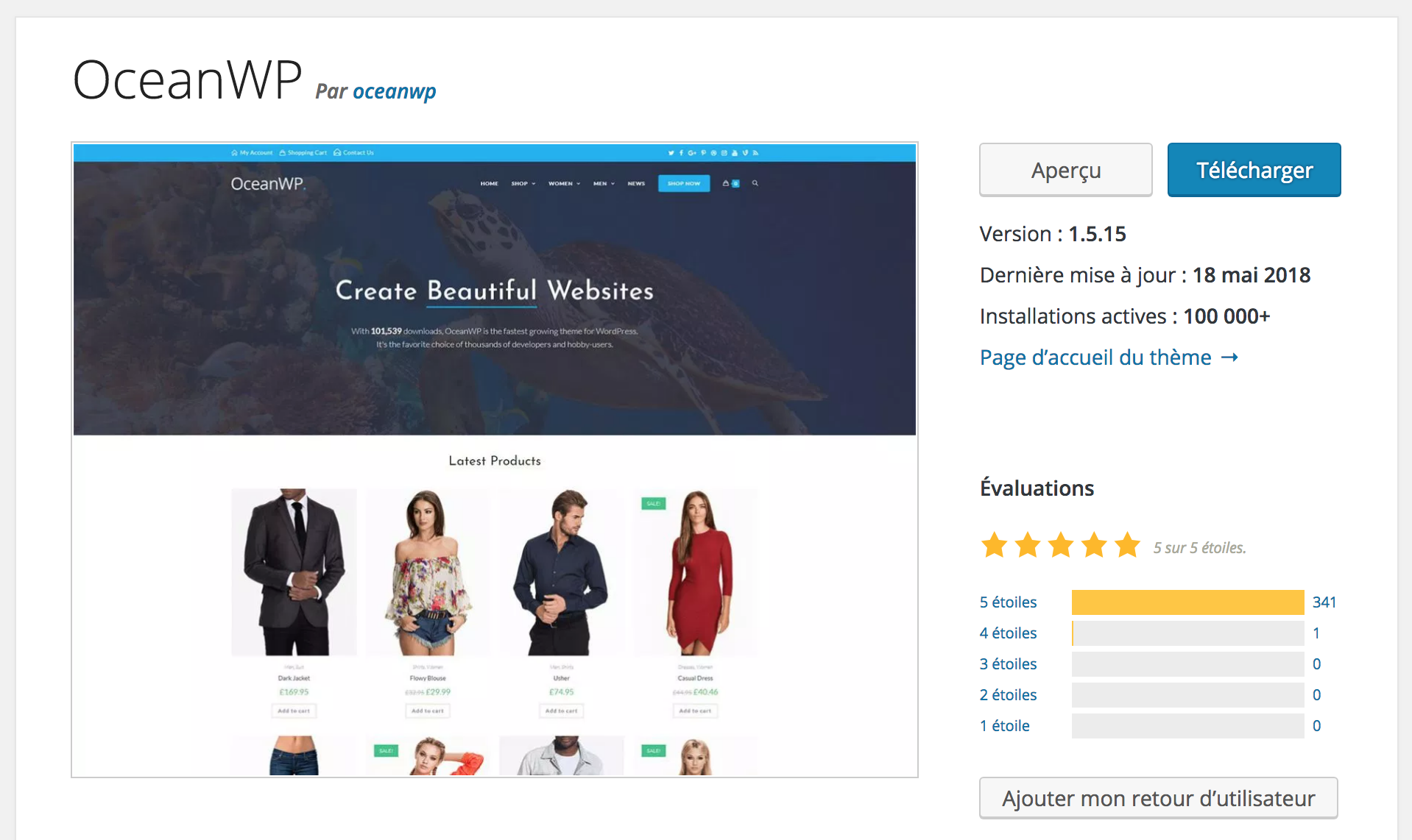 en savoir plus : https://fr.wordpress.org/themes/oceanwp/