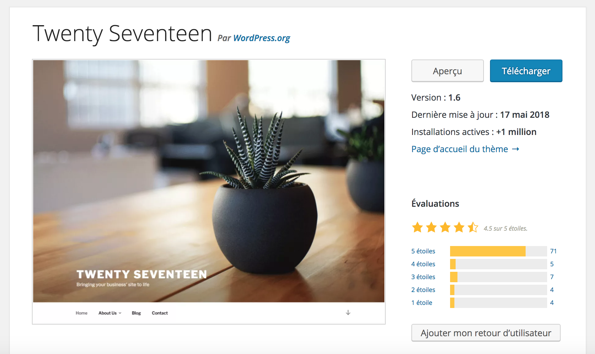 en savoir plus : https://fr.wordpress.org/themes/twentyseventeen/