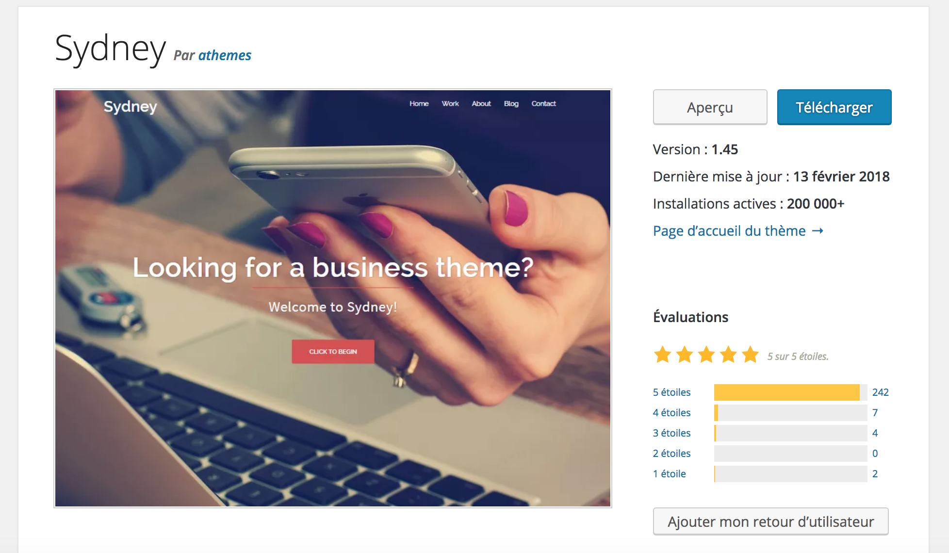 en savoir plus : https://fr.wordpress.org/themes/sydney/