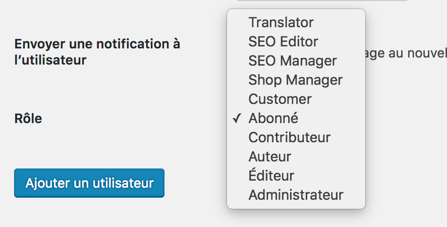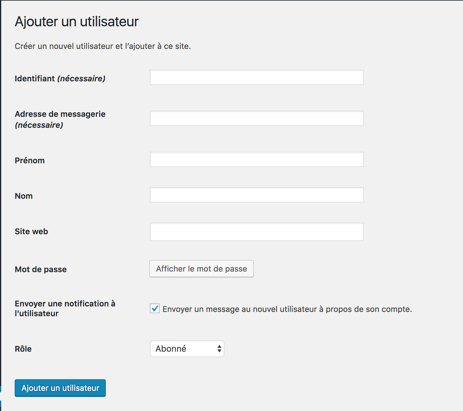 WordPress vous offre la possibilité d’ajouter des utilisateurs ayant des rôles différents. Le rôle correspond aux droits qu’un utilisateur a sur le site : publier, écrire, modifier, supprimer, etc.