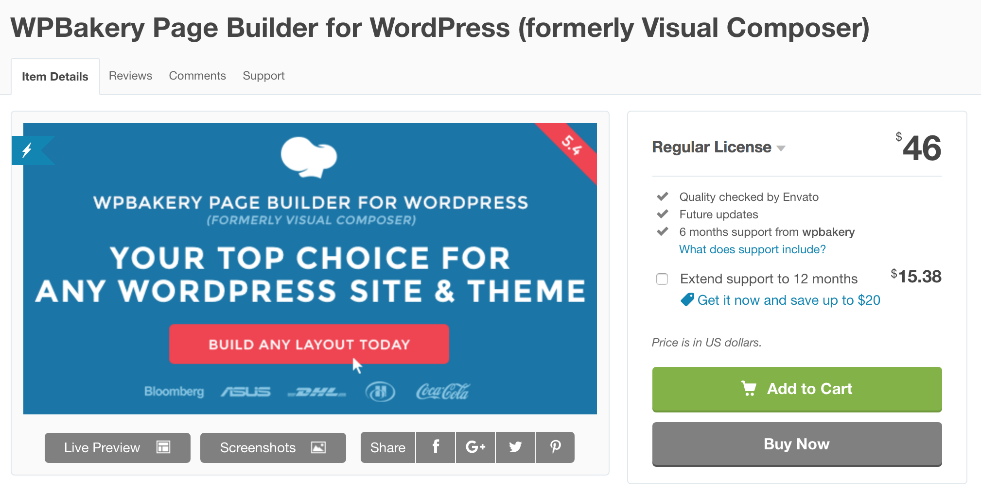 WPBakery est un Page builder ou un constructeur de page. Il est un plugin premium qui facilite la mise en page des pages et des articles de son site.