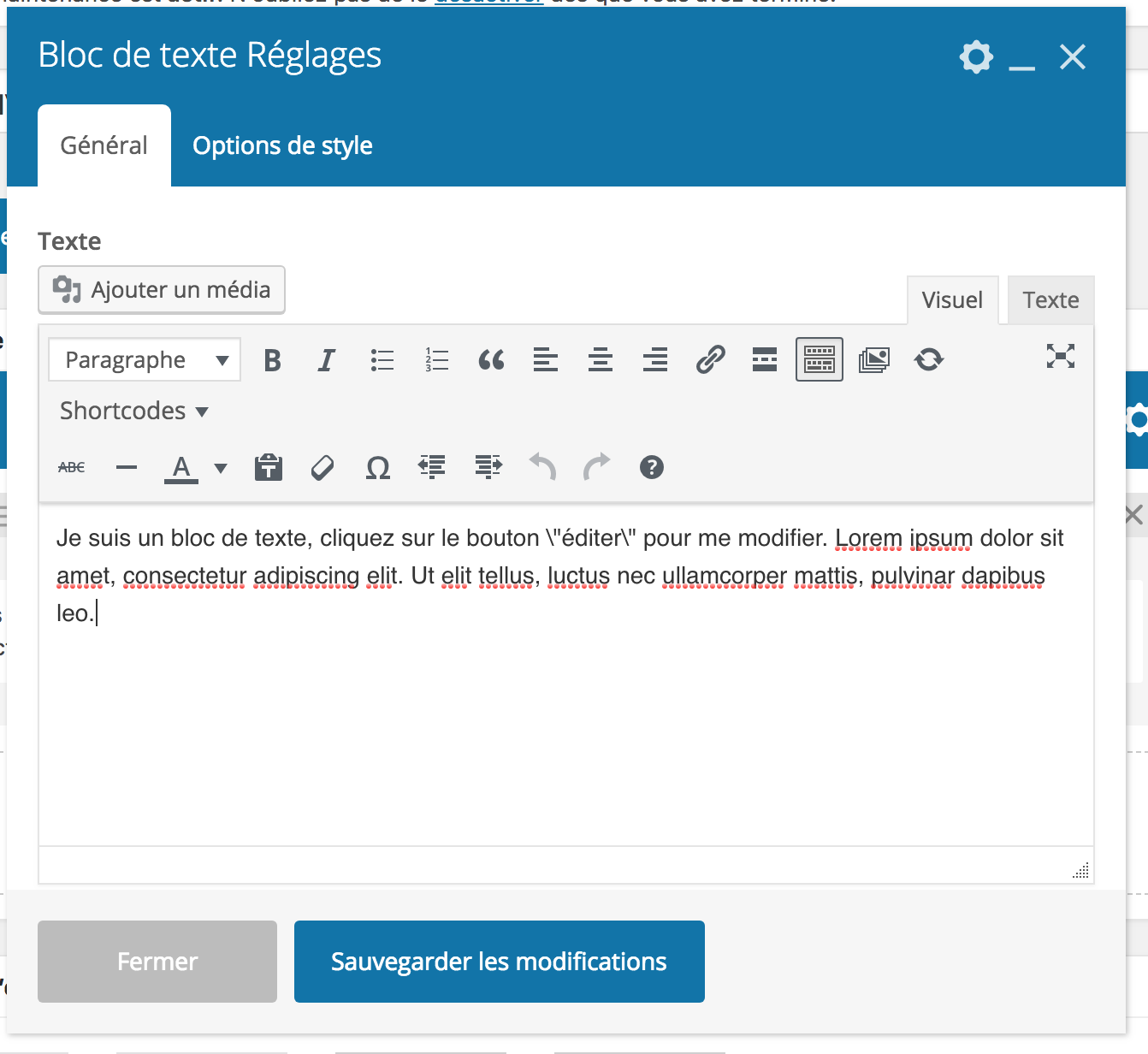 Il ressemble à la zone de texte de WordPress à la différence qu'un texte démo y ait placé.