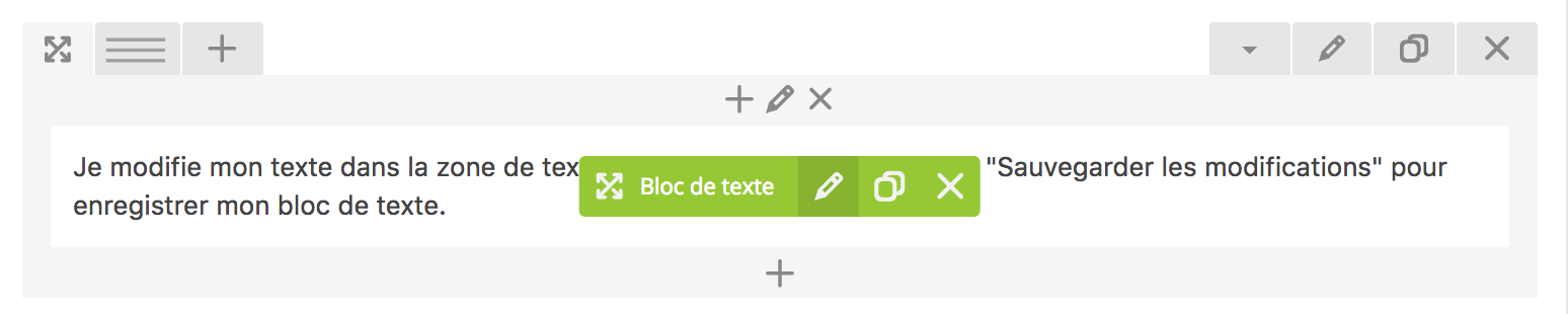 Si je souhaite modifier le contenu existant. Passer votre curseur sur l'élément. Un petit bloc vert apparaît, pressez l'icône crayon pour ouvrir à nouveau l'élément.