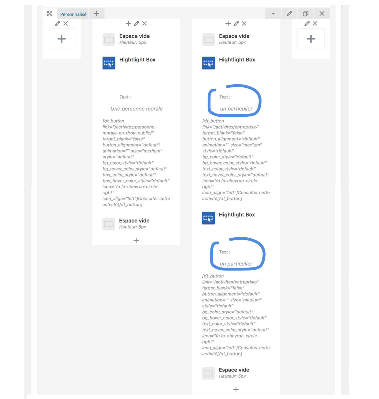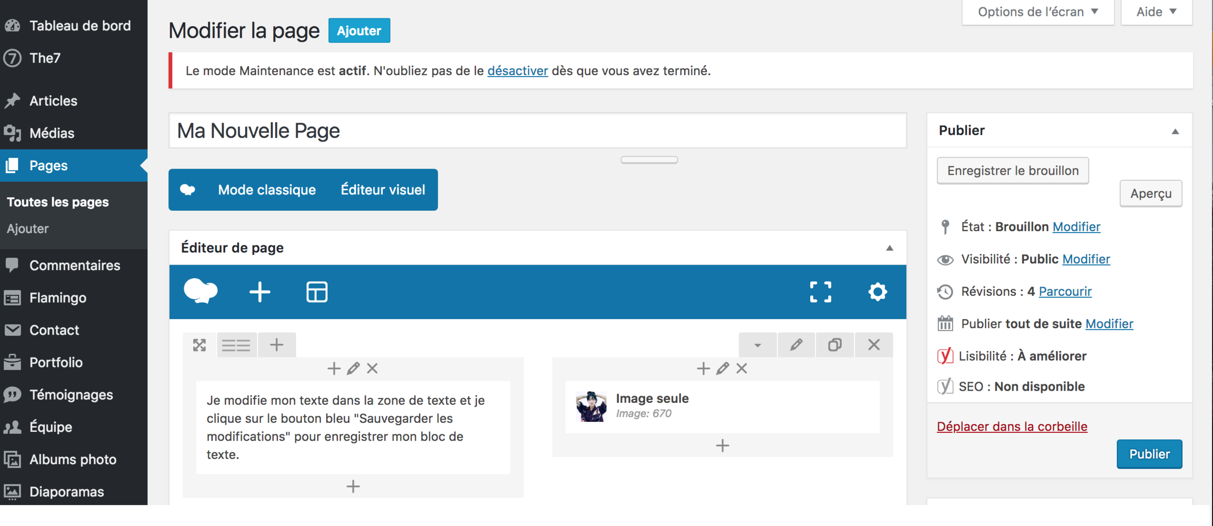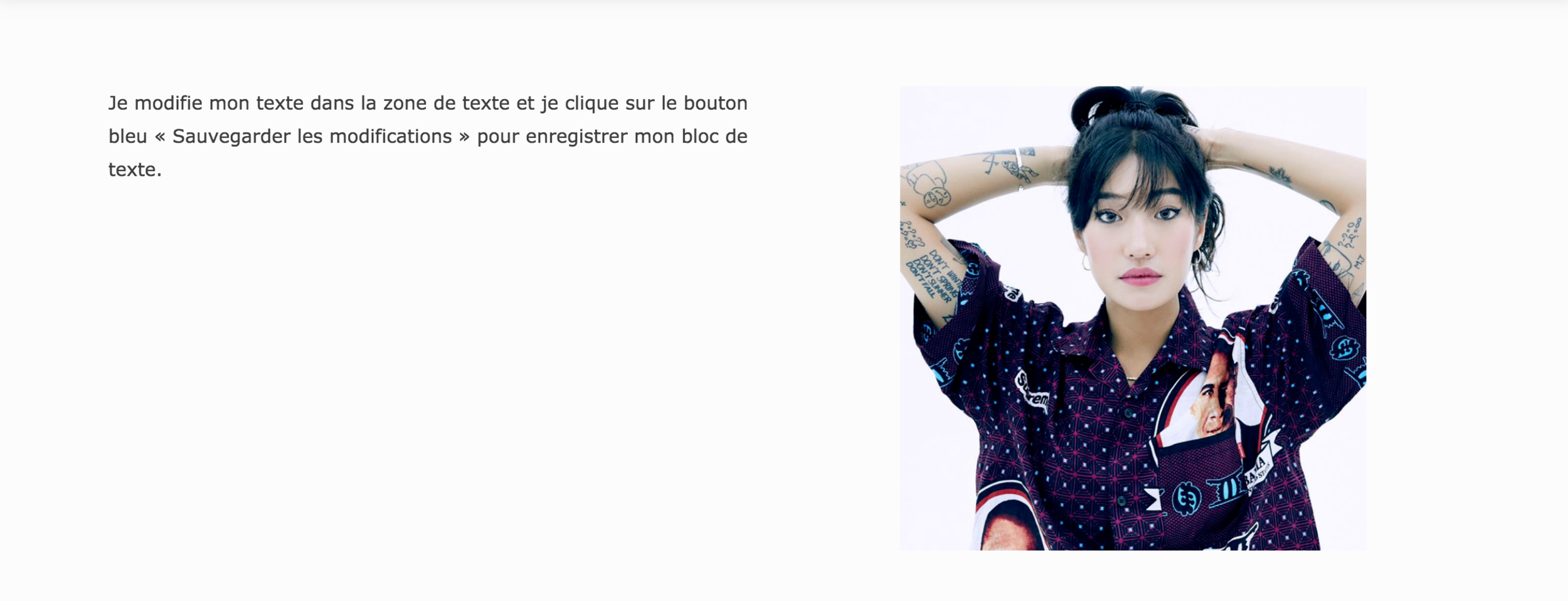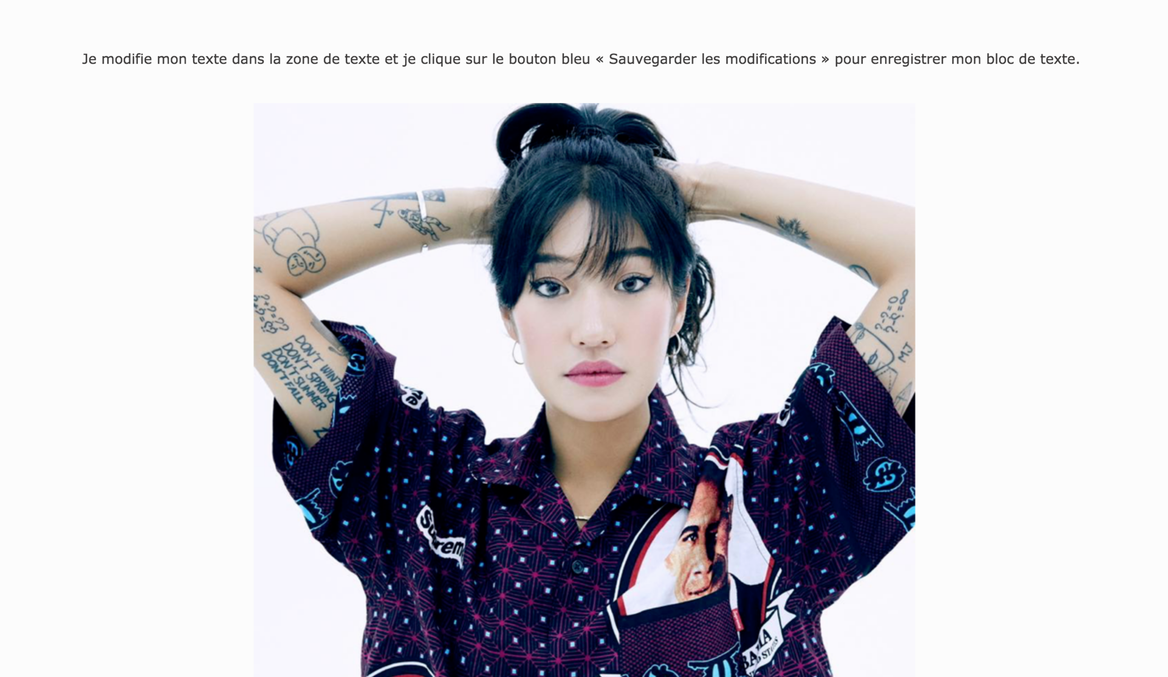 Nous voyons bien l'élément Bloc de texte et l'élément Image seule qui se suivent
