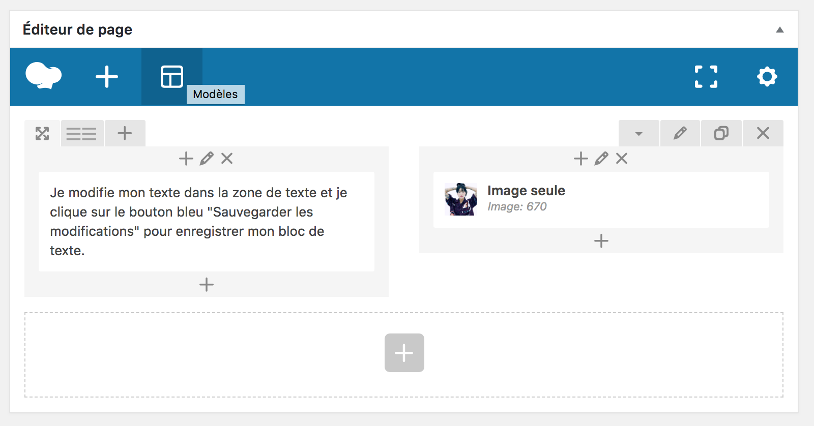 A noter : vous pouvez dupliquer plusieurs modèle sur une page. Ces modèles apparaîtront à la suite.