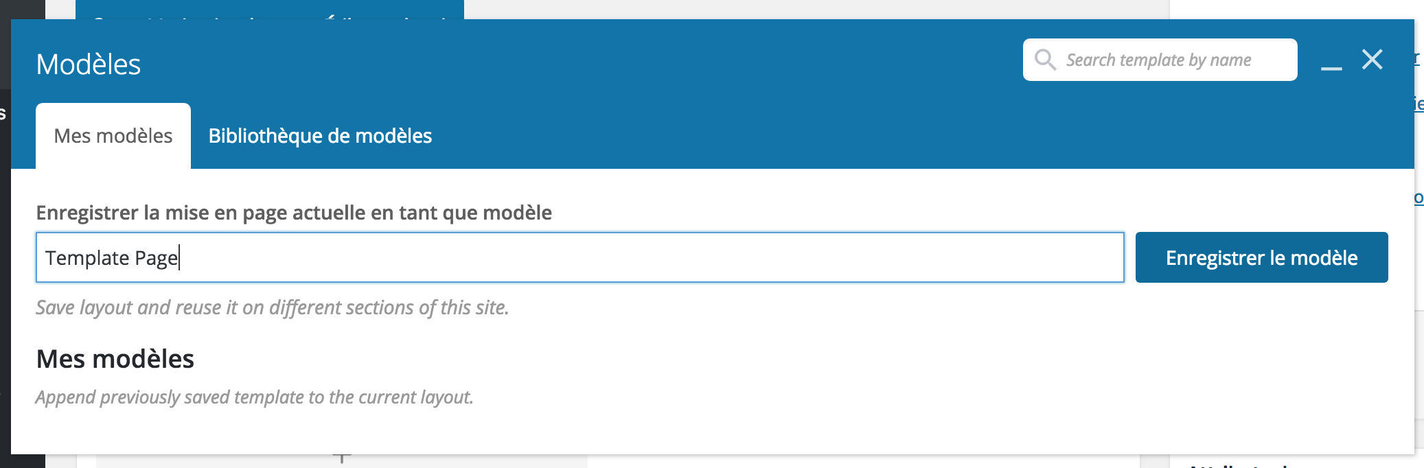 Le modèle de votre page est à présent référencé dans la liste Mes modèles et est prêt à être utilisé.