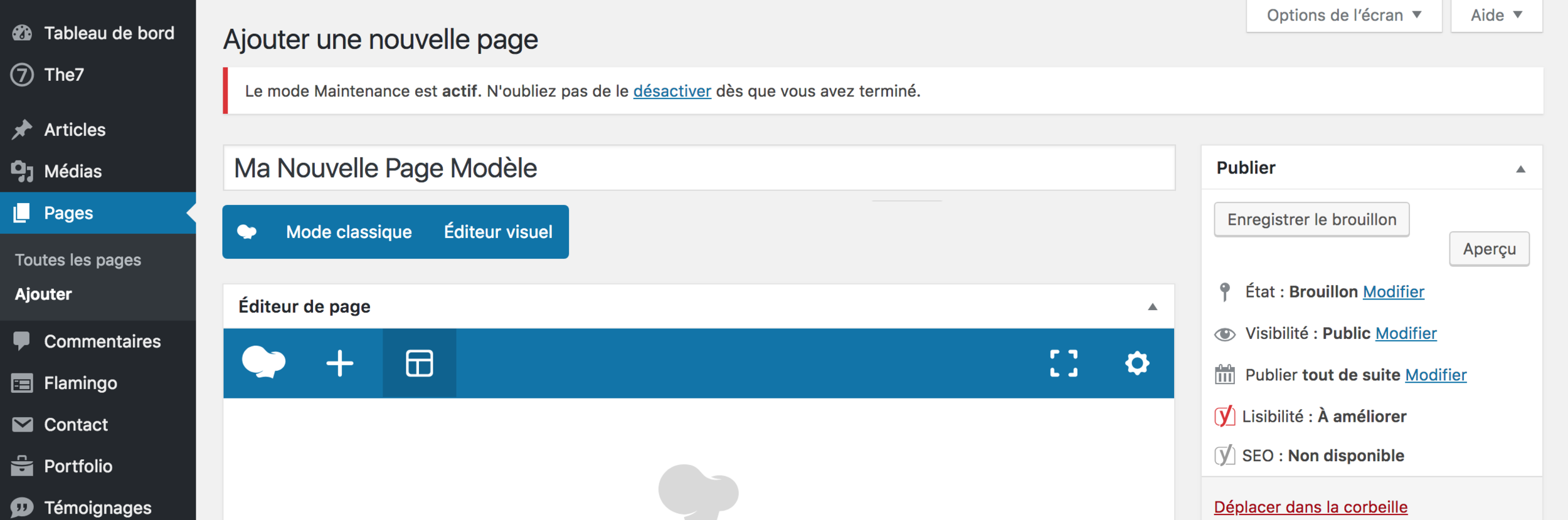 La duplication du modèle a bien été exécutée sur notre nouvelle page.