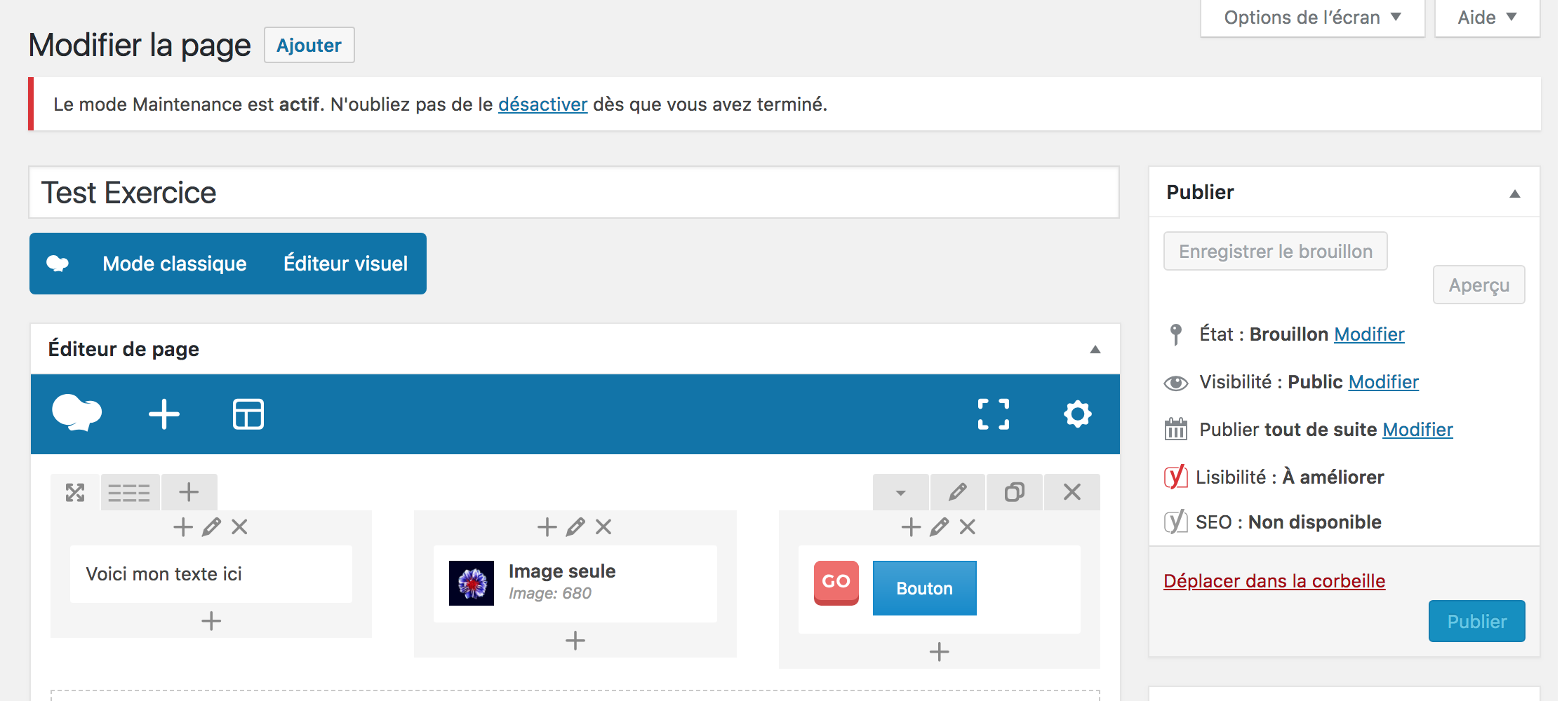 A présent vous avez compris les fondamentaux du constructeur de page WPBakery :