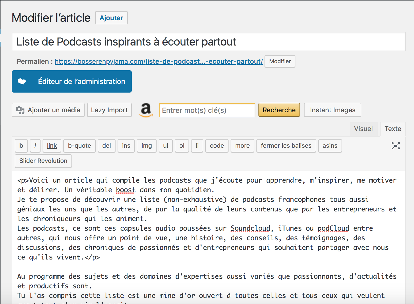Très facilement, nous atterrissons sur la zone de travail "Ajouter un nouvel article" pour rédiger ton nouvel article.