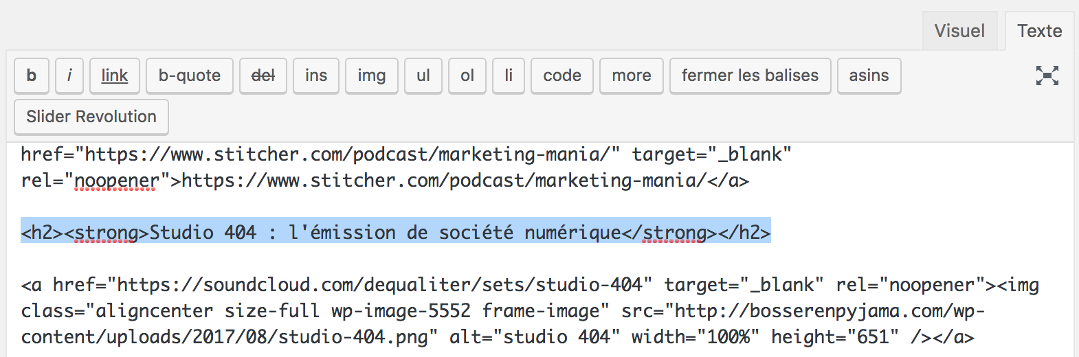 En mode Texte (HTML) :
