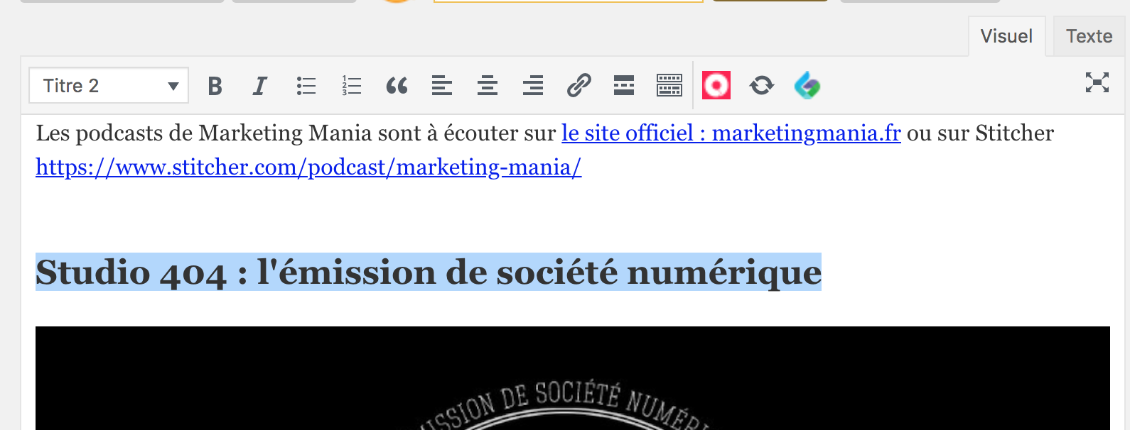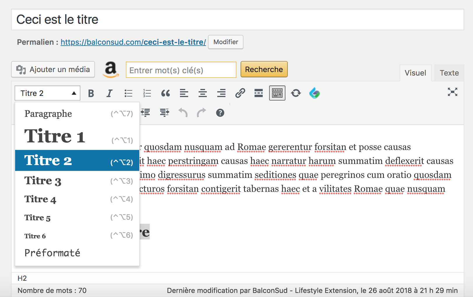 et les Titres en mode Visuel avec WordPress.