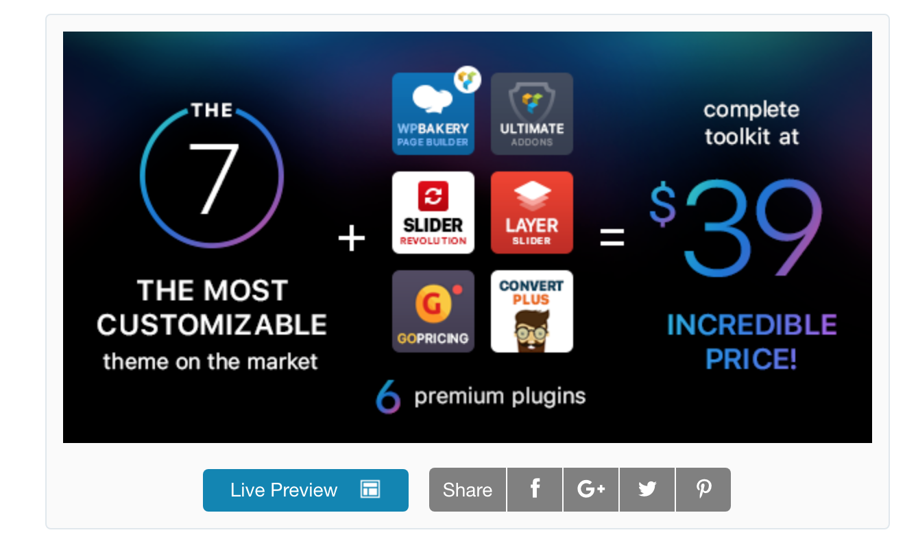 Par exemple The 7, l'un des templates les plus populaires propose un lot de 6 plugins premium dont Revolution Slider.