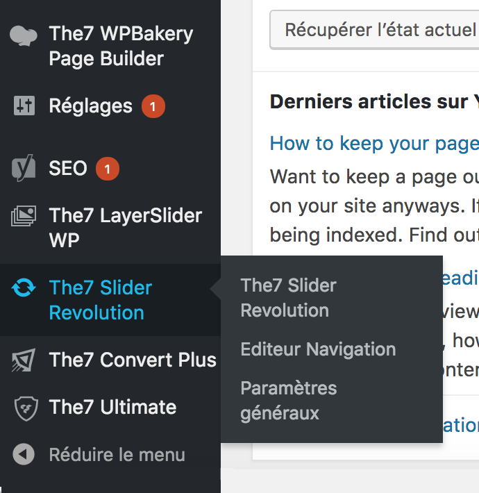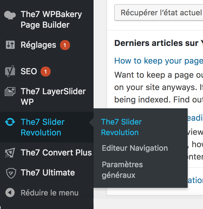 Note : Il se peut que vous puissiez tombé sur des appellations différentes comme : The7 Slider Revolution qui fait référence au Template premium The 7. Seul le nom change pas la configuration.