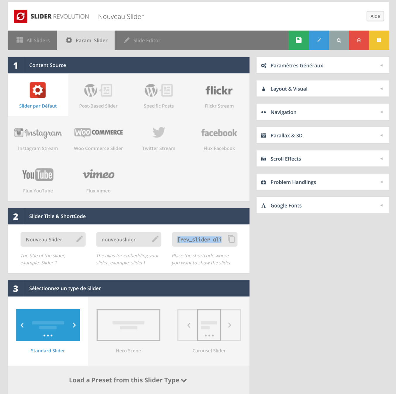 Cliquez sur la boîte "Nouveau Slider" pour créer un nouveau projet de slider.