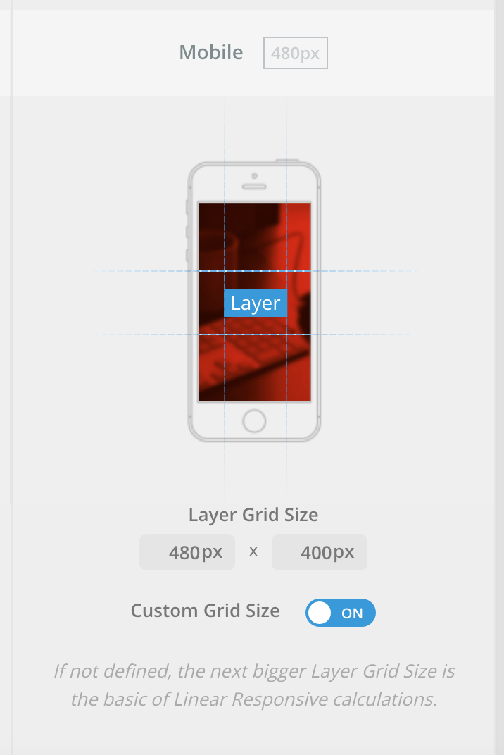 Par défaut vous pouvez garder les tailles en l'état et vous voyez uniquement les dimensions pour le desktop que vous pouvez modifier. Si vous modifiez une dimension par défaut toutes les autres tailles vont se retailler automatiquement en fonction des nouvelles dimensions attribuer. Si toute fois vous voulez attribué des tailles manuellement pour avoir des visuels personnalisés. Vous pouvez mettre Custom Grid Size en mode "On".