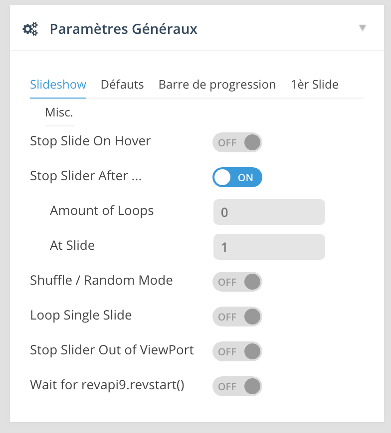 - Stopper le slider après un nombre prédéfinis de boucles,