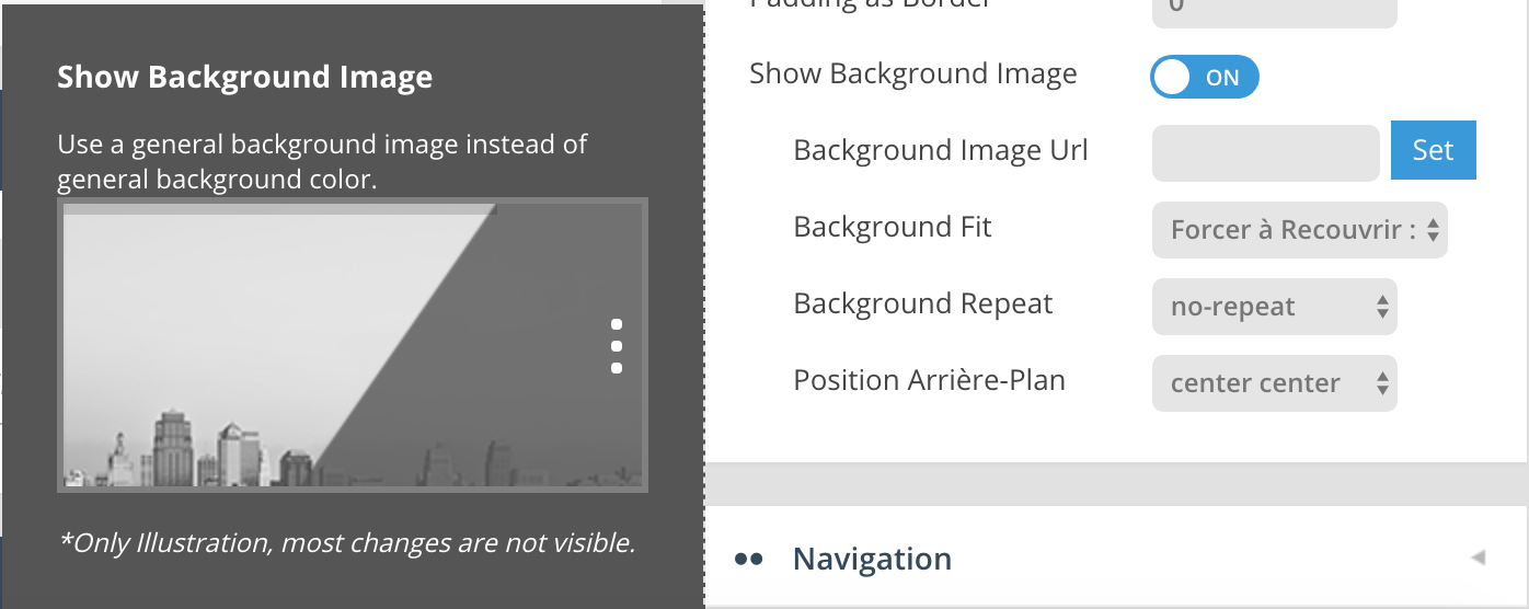 Cela nous permet de voir comment l'image d'arrière plan s'affiche, nous allons la configurer.