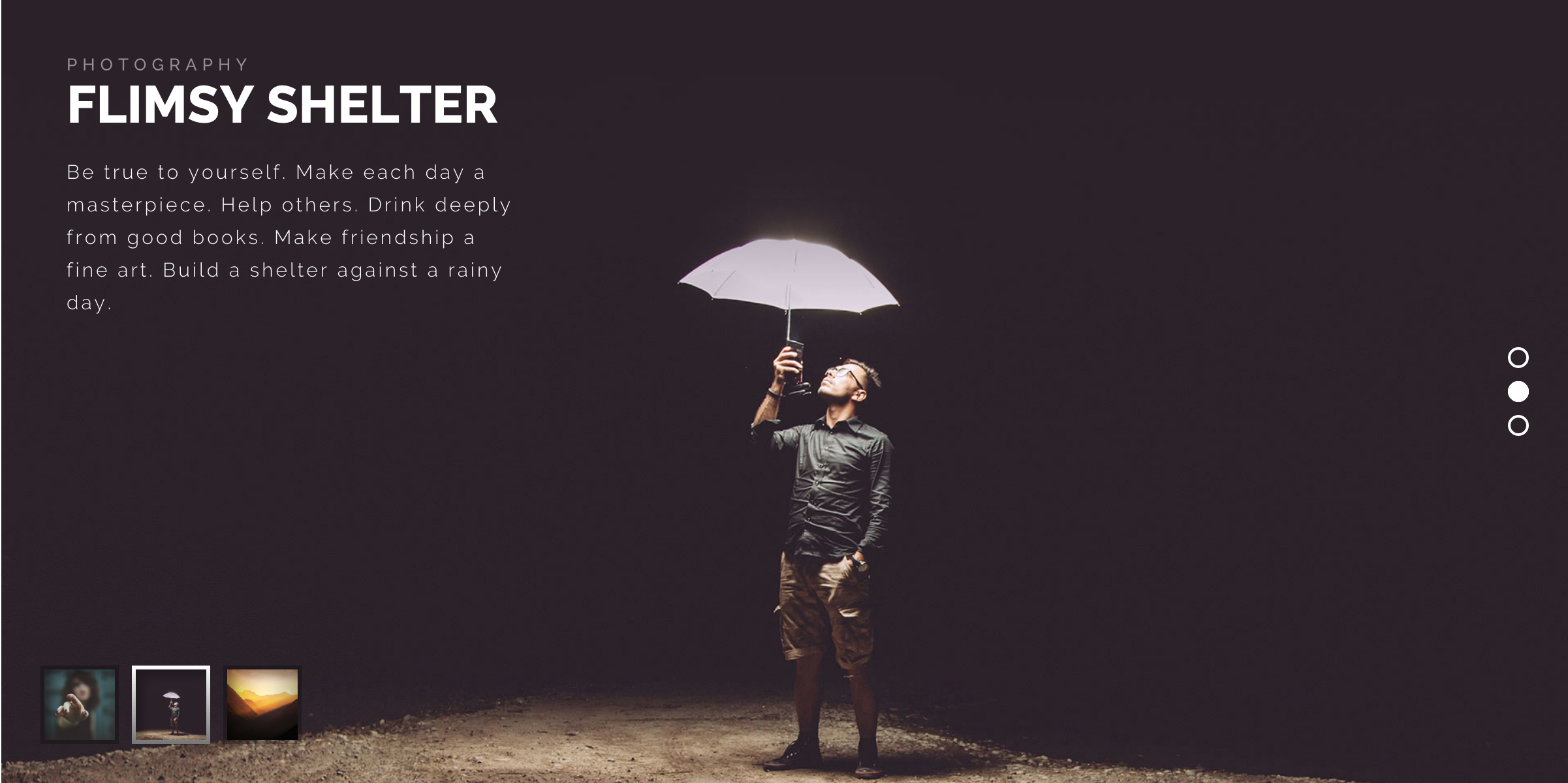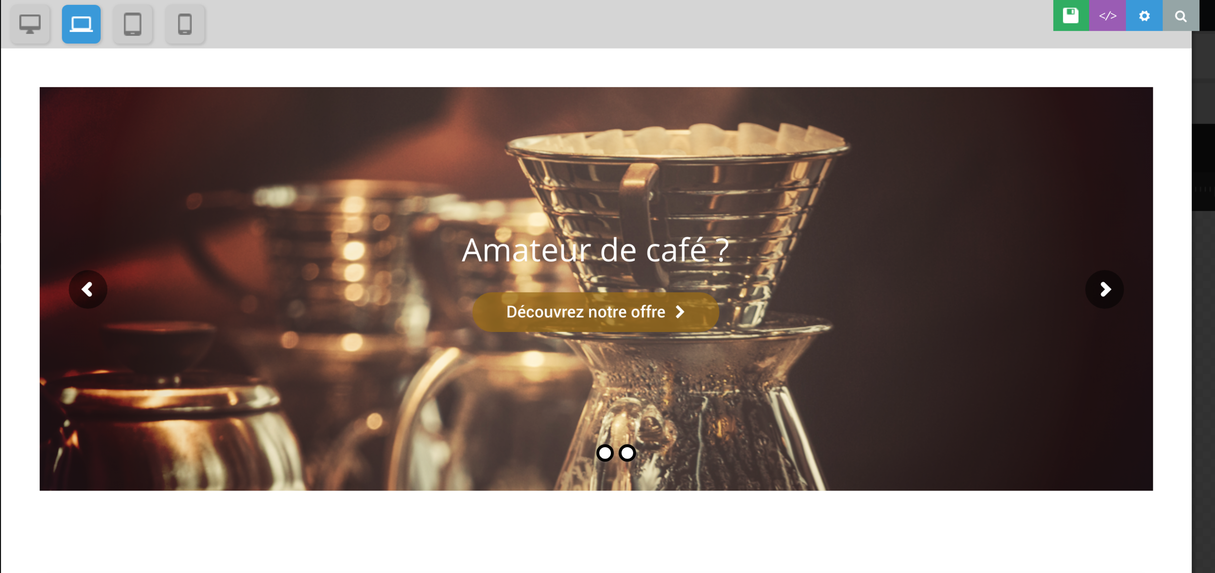Le slider a pour vocation de présenter un texte et/ou un call-to-action (= bouton d'appel à l'action) pour emmener rapidement le visiteur à une page stratégique de votre site web. Il est généralement accompagné d'une image en arrière plan pour rendre le contenu plus significatif et attractif.