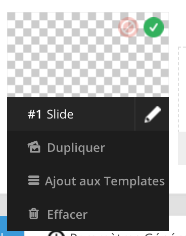 Liste des slides : permet d'ajouter des slides individuels et ou de paramétrer un slide existant. en passant le curseur dessus :