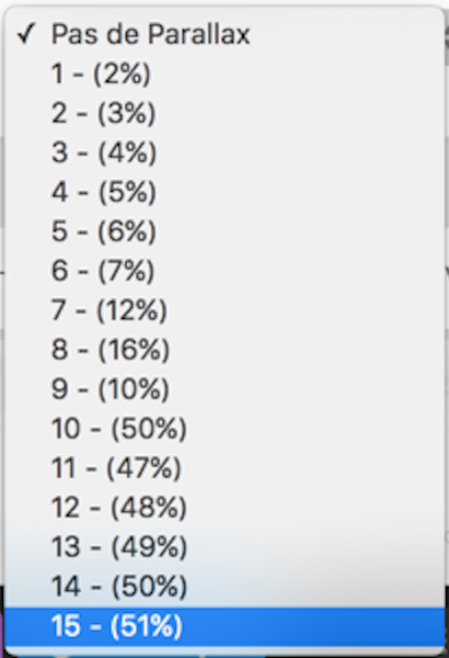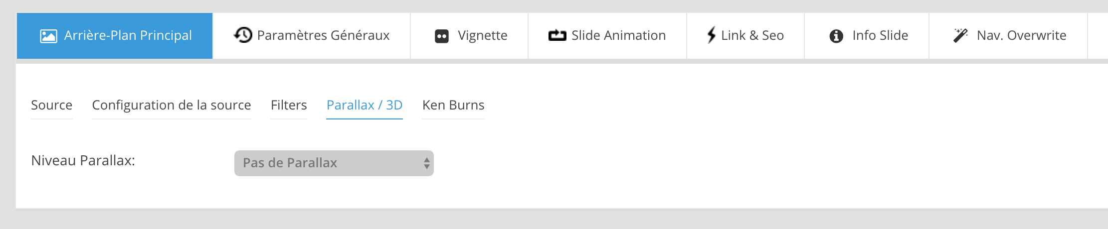 Nous avons juste à enclencher le fichier déroulant : Niveau Parallax pour choisi quel niveau nous souhaitons (c.f. Param. Sliders)