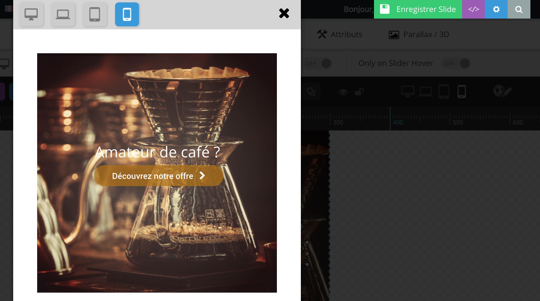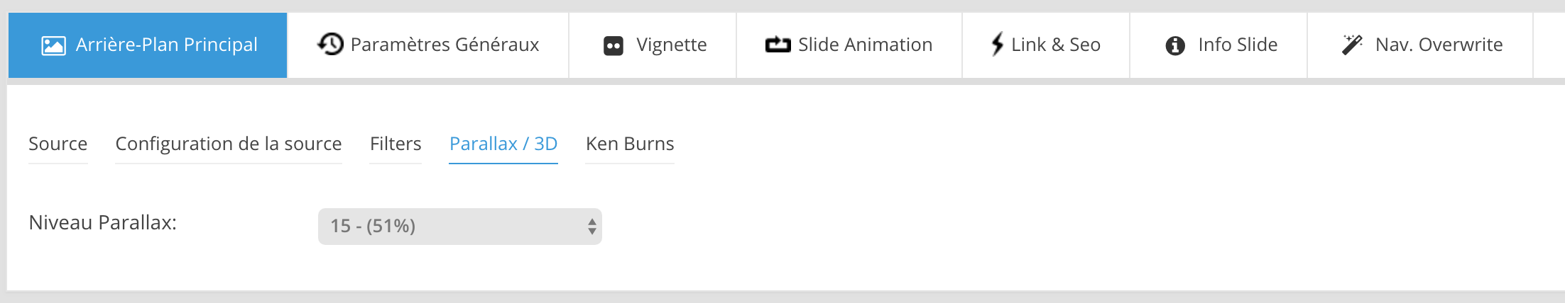 Dans le sous-onglet suivant : Parallax / 3D, nous allons ajouté un effet parallax à notre slide.
