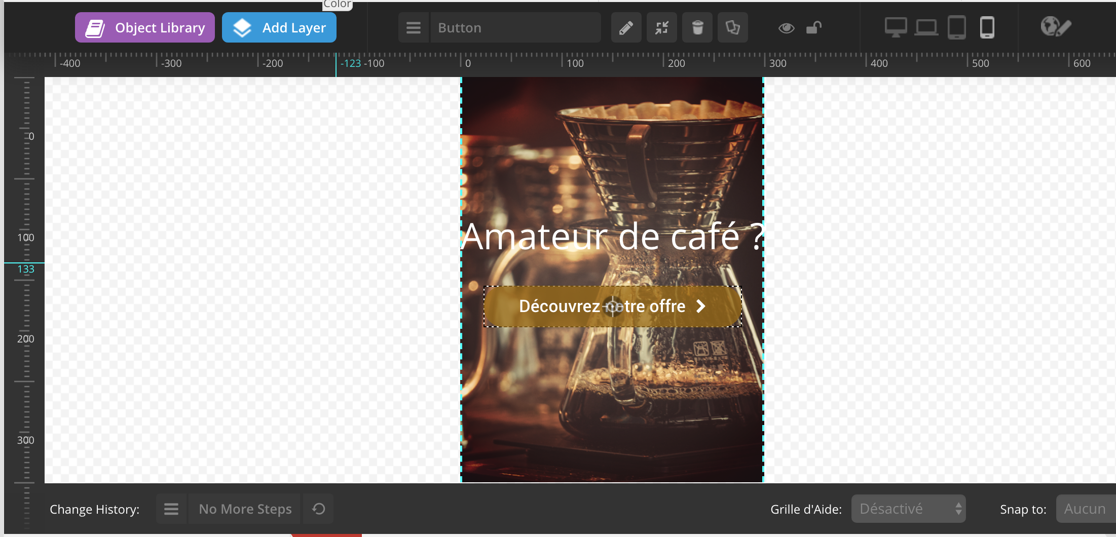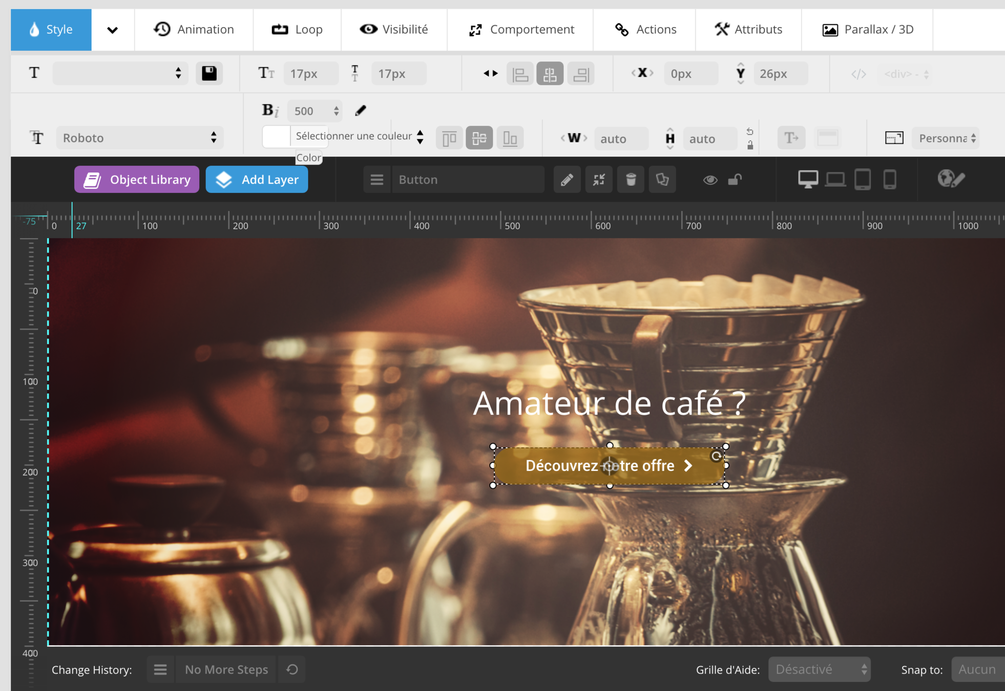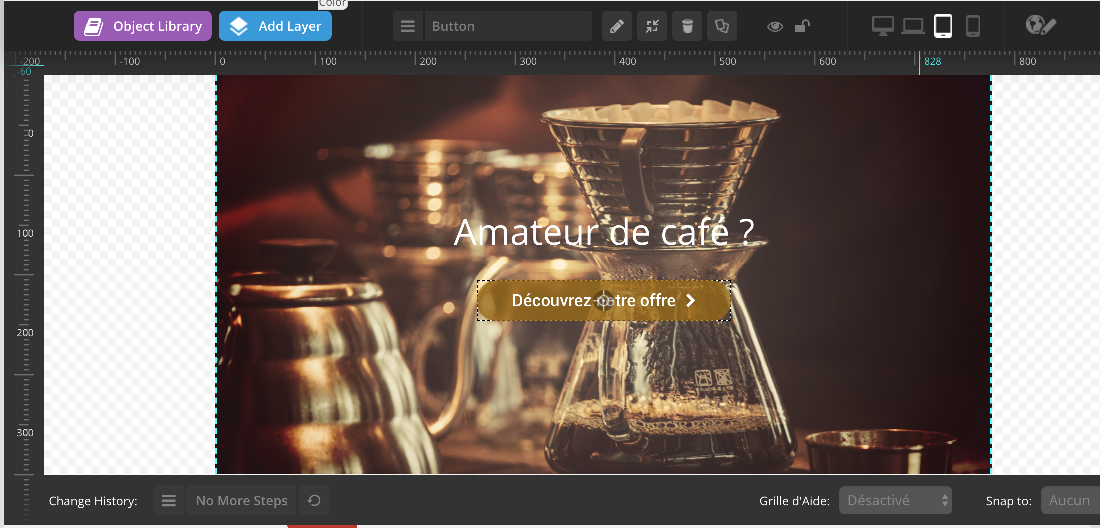 Une fois le bouton ajouté sur la zone, vous pouvez le styler et l'aligner comme lors de l'ajout du texte :