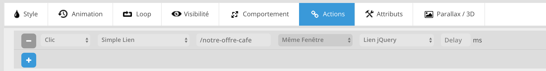 Cliquer sur l'onglet "Actions" en vous assurant que vous avez bien sélectionné le bouton.