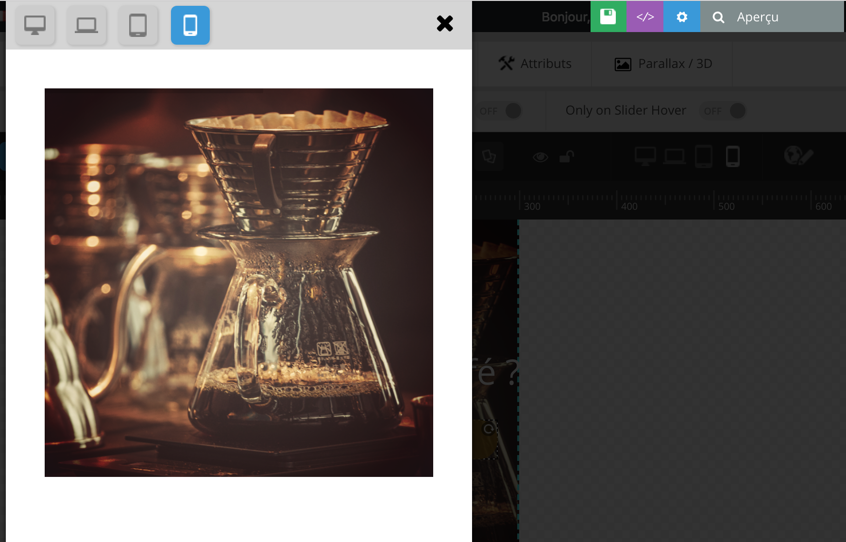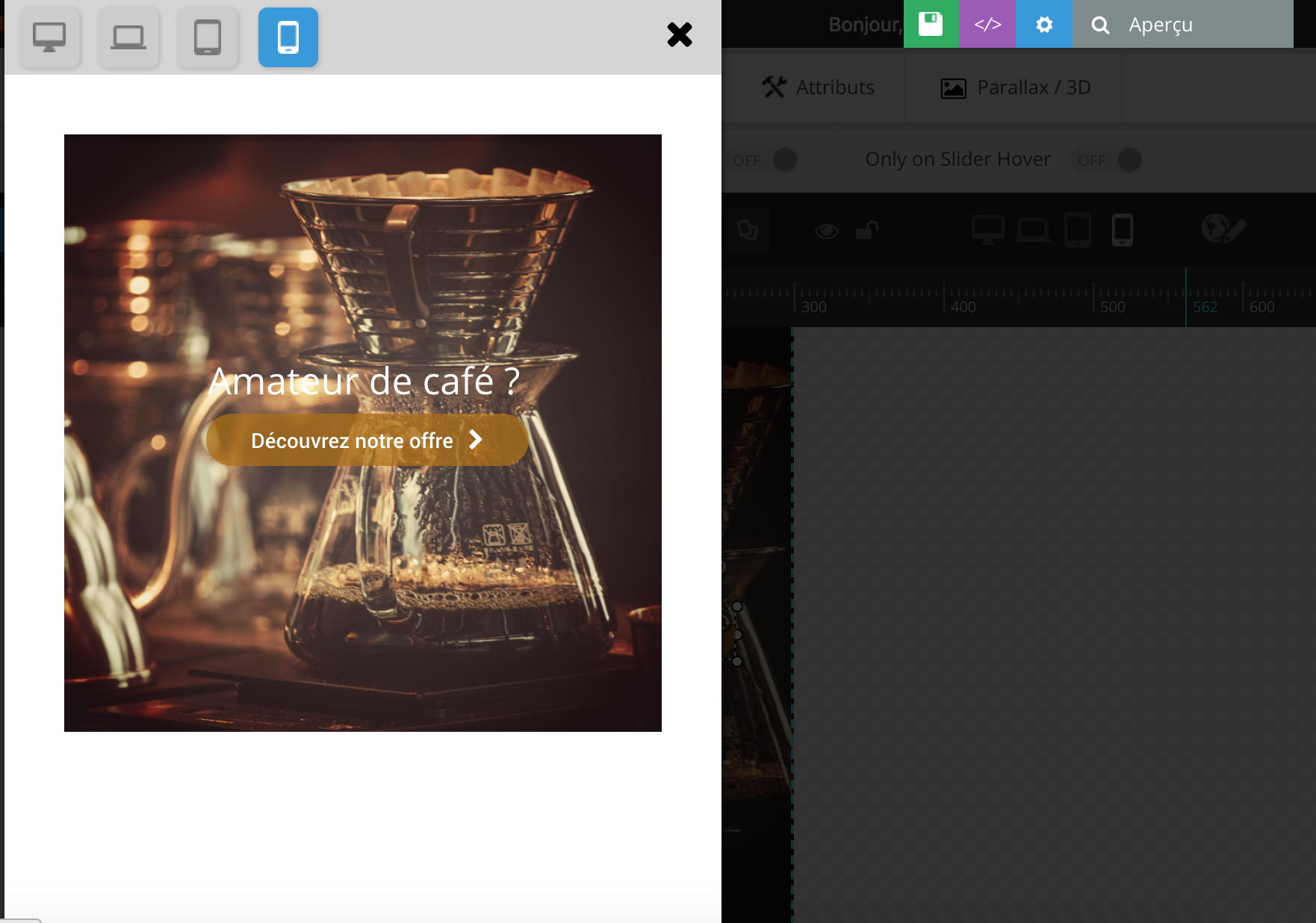 Deuxième Problème : Si on créé un contenu adapté pour le format Mobile, il va apparaître sur tous les autres formats et donc il y aura une duplication des textes et boutons sur tous les formats