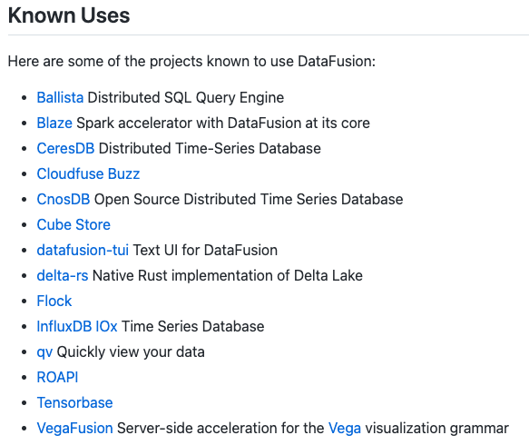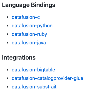 DataFusion is an extensible query planning, optimization, and execution framework, written in Rust, that uses Apache Arrow as its in-memory format.