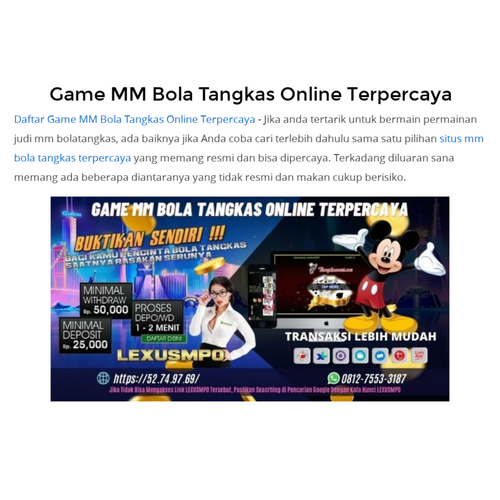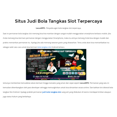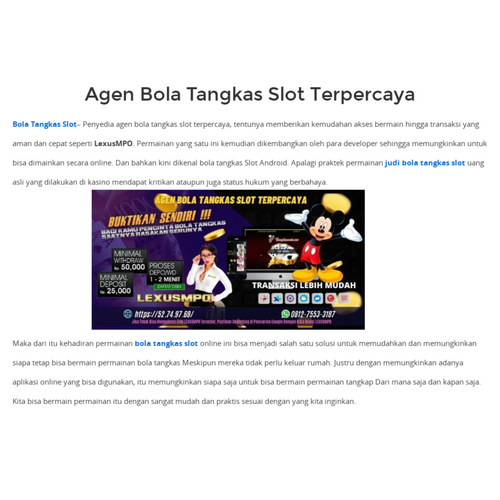 LEXUSMPO– Penyedia agen bola tangkas slot terpercaya, tentunya memberikan kemudahan akses bermain hingga transaksi yang aman dan cepat seperti LEXUSMPO. Permainan yang satu ini kemudian dikembangkan oleh para developer sehingga memungkinkan untuk bisa dimainkan secara online. Dan bahkan kini dikenal bola tangkas Slot Android. Apalagi praktek permainan judi bola tangkas slot uang asli yang dilakukan di kasino mendapat kritikan ataupun juga status hukum yang berbahaya.