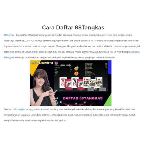 Permainan judi online adalah permainan judi yang dimainkan dengan cara online yang hanya menggunakan perangkat seperti komputer, laptop dan juga smartphone untuk memainkannya. Dan salah satu jenis permainan judi online yang banyak sekali diminati oleh masyarakat yaitu permainan judi 88 tangkas online