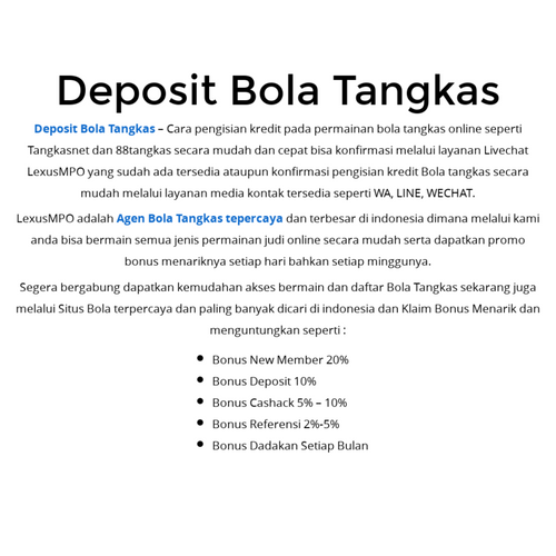 LEXUSMPO Selaku Fasilitas Penyuplai Daftar Situs bola tangkas slot paling dipercaya tentu saja sediakan transaksi bisnis lewat pulsa telkomsel dan XL dengan minimum deposit cuman 25ribu dan ambil dana 50rb. Pasti membuat beberapa anggota jadi opsi pilihan untuk memainkan permainan bola tangkas paling populer seperti Tangkasnet dan 88Tangkas.