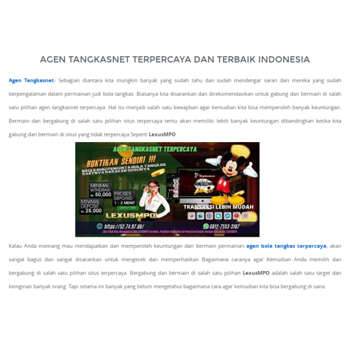 LEXUSMPO - Sebagian diantara kita mungkin banyak yang sudah tahu dan sudah mendengar saran dari mereka yang sudah berpengalaman dalam permainan judi bola tangkas. Biasanya kita disarankan dan direkomendasikan untuk gabung dan bermain di salah satu pilihan agen tangkasnet terpercaya.