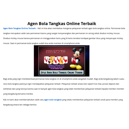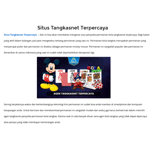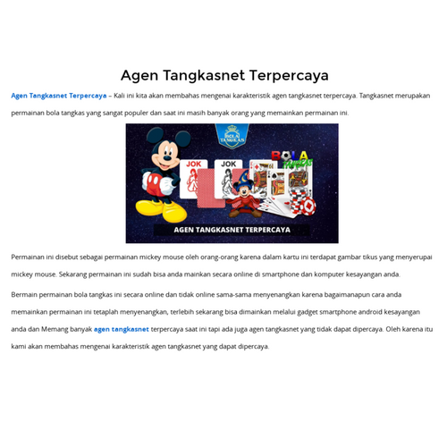 Agen Tangkasnet Terpercaya - Tangkasnet adalah permainan bola tangkas yang dianggap oleh orang-orang adalah sebagai permainan yang menggunakan karakter mickey mouse, karena pada kartunya terdapat kombinasi kartu joker dan gambar mickey mouse.