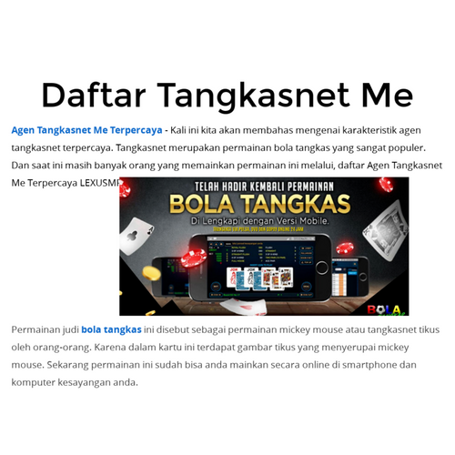 Daftar 88tangkas - Permainan bola tangkas merupakan permainan yang sangat populer yang diperkenalkan pada tahun 1980an di asia dan permainan ini masih diperbolehkan. Dan pada tahun 1990an permainan tangkas88 di seluruh negara asia ini resmi dilarang karena sudah ada undang-undang yang mengatur. Banyak orang yang pusing dan bingung bagaimana caranya untuk dapat memainkan permainan ini dengan mudah, melalui Daftar Agen Tangkas88 Android Terpercaya LEXUSMPO.
