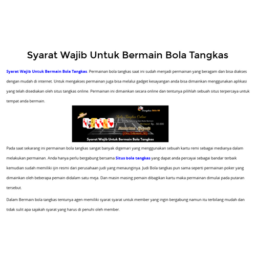 Syarat Wajib Untuk Bermain Bola Tangkas. Permainan bola tangkas saat ini sudah menjadi permainan yang beragam dan bisa diakses dengan mudah di internet. Untuk mengakses permainan juga bisa melalui gadget kesayangan anda bisa dimainkan menggunakan aplikasi yang telah disediakan oleh situs tangkas online. Permainan ini dimainkan secara online dan tentunya pilihlah sebuah situs terpercaya untuk tempat anda bermain.