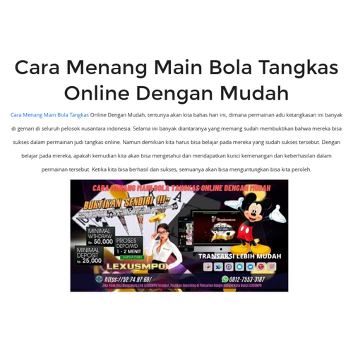 LEXUSMPO - Bagi Anda yang memang Berencana untuk bermain permainan bola tangkas, maka Kemudian Anda harus bisa mengetahui tentang beberapa cara yang memang bisa dilakukan. Salah satu diantara hal yang paling penting untuk anda pelajari adalah tentang bagaimana caranya agar Kemudian Anda bisa menang. Kemenangan adalah target atau tujuan yang diinginkan dan diharapkan oleh banyak orang selama ini. Akan tetapi yang belum mengetahui bagaimana agar kemudian bisa mereka menang dalam permainan tersebut.
