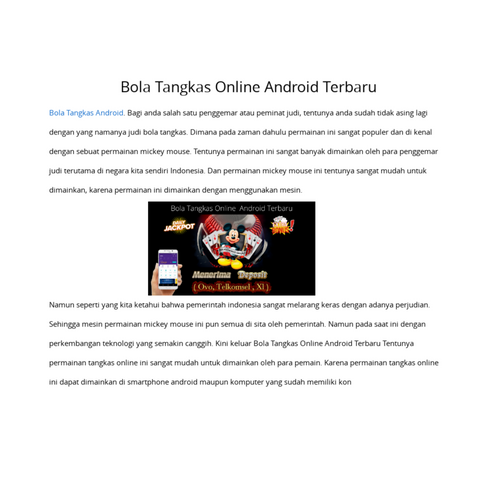 Permainan Judi MM Bola Tangkas online versi Android ini bisa dipastikan kian marak. Untuk kalangan yang hobby bermain judi bolatangkas atau mickey mouse. Yang biasa hanya dapat dimainkan pada mesin yang di sediakan oleh bandar darat yang sudah banyak ditutup oleh aparat setempat. Mengingat permainan adu ketangkas ini dijadikan sebagai mesin judi di indonesia. Akan tetapi permainan bola tangkas ini bisa anda mainkan di Daftar Situs Agen MM Bola Tangkas Online Terpercaya Tangkasbola88.